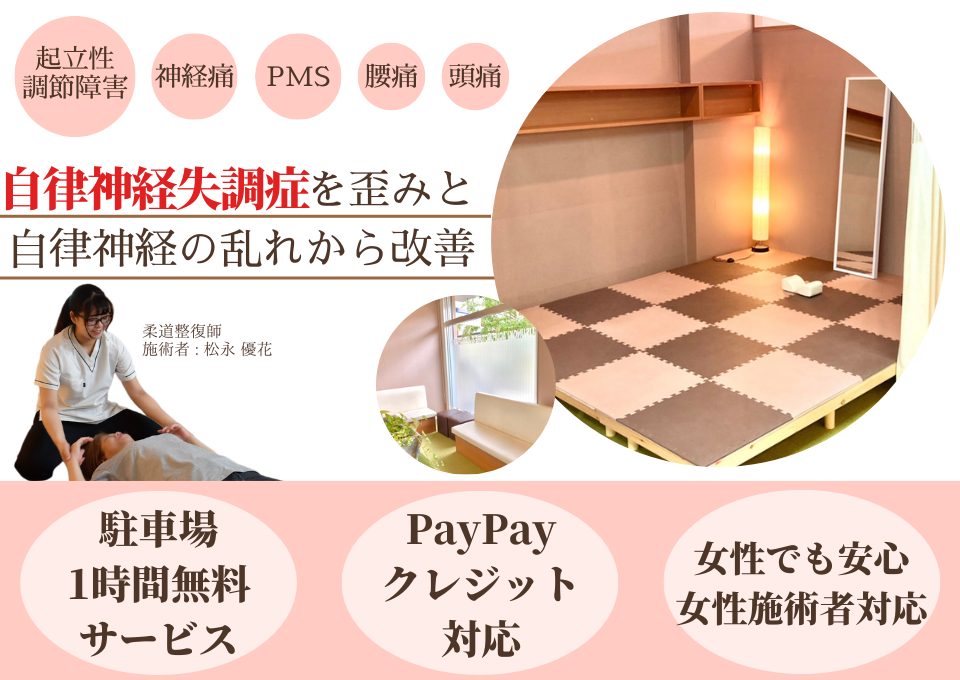 当院は、肩こり・腰痛・ホルモンバランスの乱れによる不定愁訴などの改善を得意とする自律神経特化の整体院です。